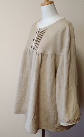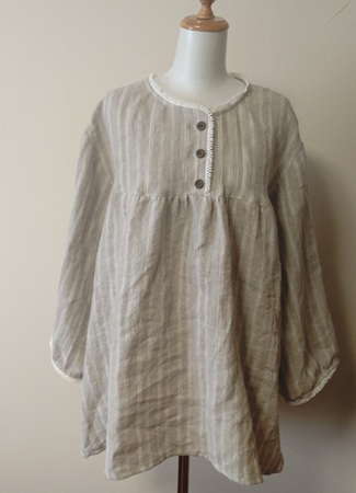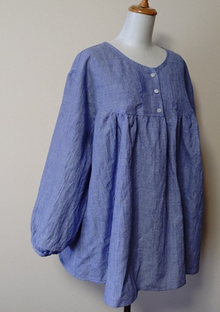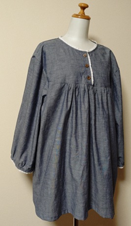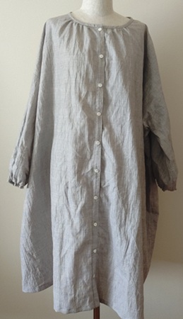 | 襟、前開き、胸元・背中タックのワンピース。 | |||