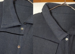 | humohgous ajisai | 襟ぐりを浅く、タック。 | 裏ヨーク・まつり始末。 | 肩に2タック。 |