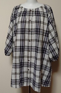 | 切替位置のギャザーをとり、スッキリラインに。 | チュニック丈をブラウス丈に。 | 長袖を七分袖に。 | ポケットをプラス。 | 身幅詰め。 | ||