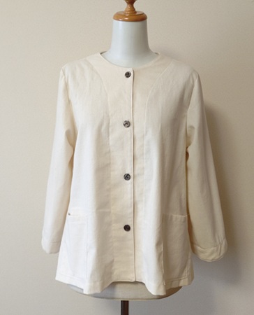 ☆mp-147u3 コットン ピンストライプ。 少し大きめの襟、前開きボタン、脇スリット、袖口細いパイピング。